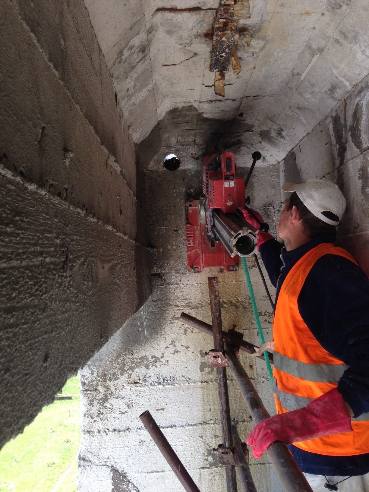 Ukážky z prác pri jadrovom vŕtaní na priehradnom múre Oravská vodná nádrž.
